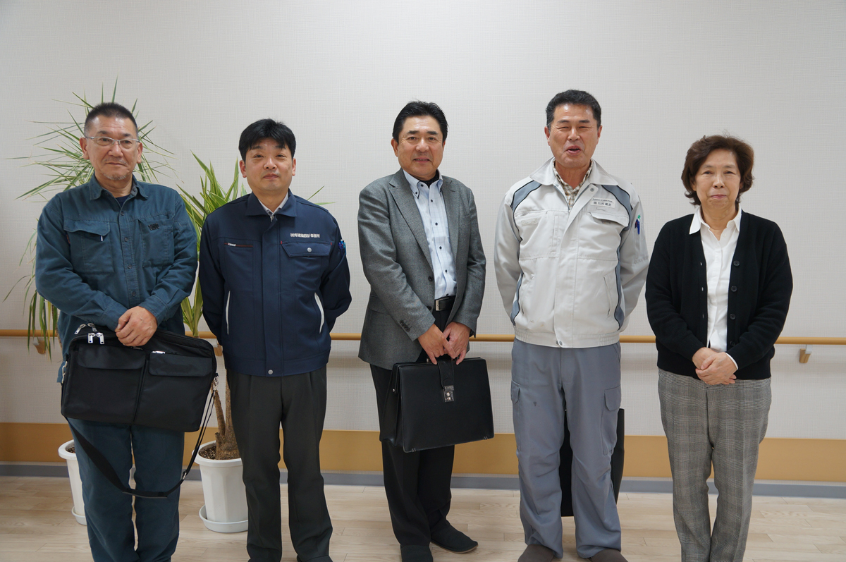 右から島村美由紀・拓心会理事長、山下弘光・川村建匠常務取締役、三上秀昭・秀建築設計事務所代表取締役、諏訪尚平・同設計チーフ、神幸史・神建築設備設計事務所(写真:守山久子)