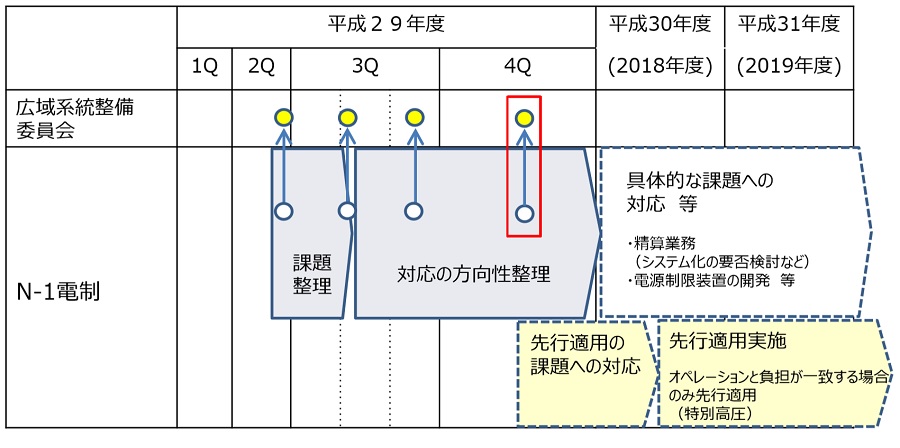日本版コネクト&マネージにおける「N-1電制」の導入スケジュール(出所: 電力広域的運営推進機構)