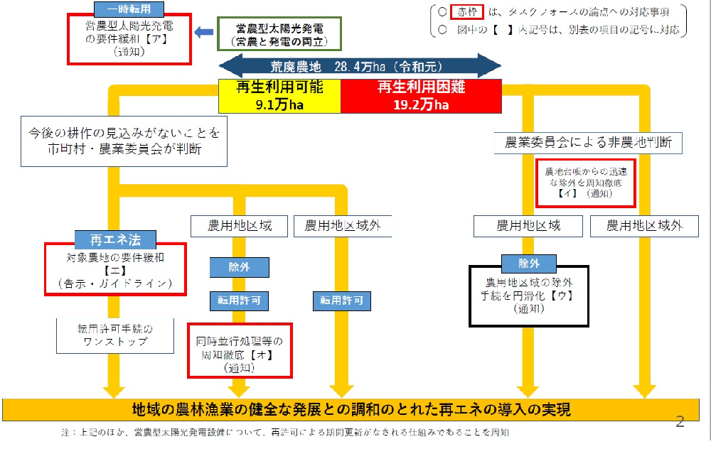 荒廃農地を活用した再エネの導入促進のために規制を見直す(出所:農林水産省)