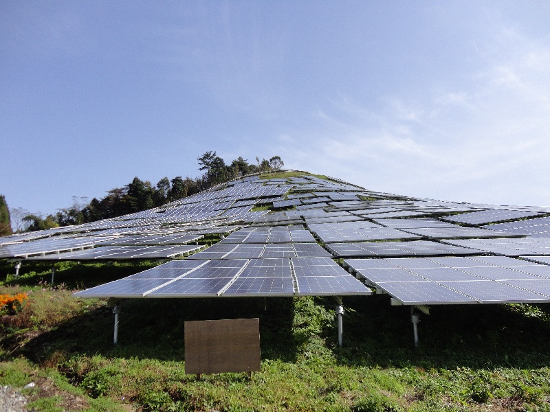 「水増ソーラーパーク」は、同集落が共同で管理する入会地に建設された。20~30度の山腹の斜面、3.4haに約8000枚の結晶シリコン型太陽光パネルを土地なりに敷き詰めた。熊本県の新エネルギー開発のベンチャー企業が土地を賃借し、太陽光発電所を建設・事業化した。