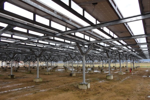 写真 営農型太陽光発電を想定した藤棚式架台(出所:日経BP)