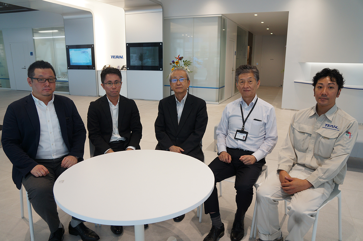左から、プランテック総合計画事務所の鈴木涼チーフアーキテクトと吉松宏樹氏、テラルの今別府眞一ソリューション技術部部長と片山俊樹取締役総務部長、大林ファシリティーズ・テラル管理事務所の行竹優氏(写真:守山 久子)