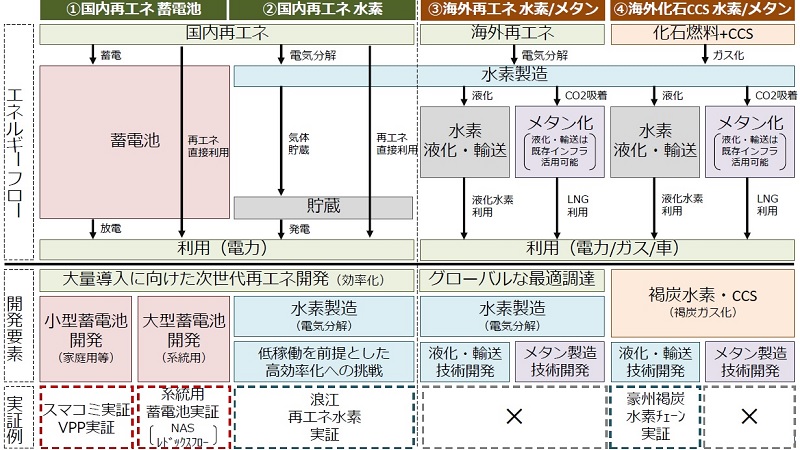 図 脱炭素化エネルギーシステムのフロートと開発要素(出所:経済産業省)
