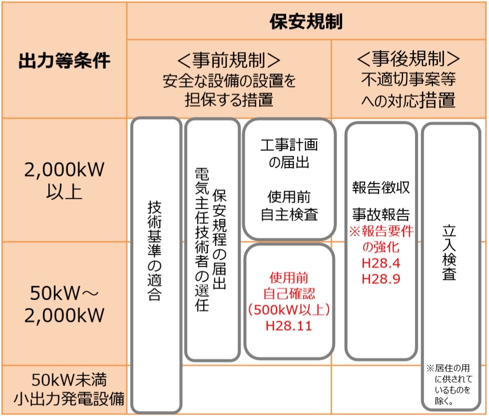 図 太陽電池発電設備の保安規制の対応(出所:経済産業省)